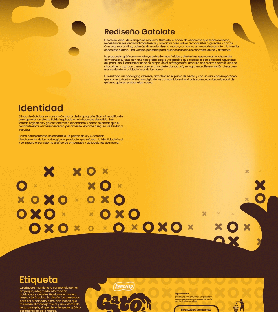 Proyecto de rebranding y rediseño de packaging de un snack chileno reconocido. Se desarrolló una nueva identidad de marca, un nuevo logotipo y la propuesta de un sabor ficticio como extensión conceptual de la línea de productos.